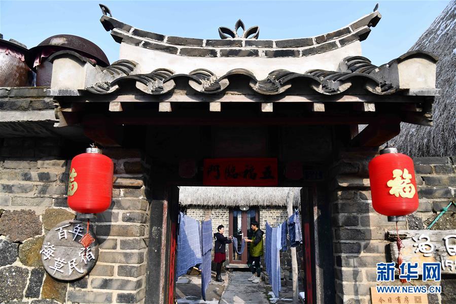 在榮成市煙墩角村,于海洋和母親趙錦蘭在打理海草民宿(1月12日攝)。新華社記者 王凱 攝