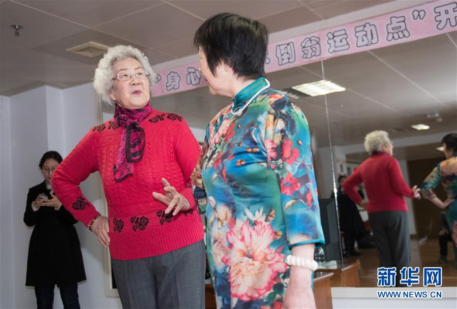1月17日,王育華(左)向杭州市社會福利中心模特隊一名隊員請教如何擺姿勢。新華社記者 翁忻旸 攝