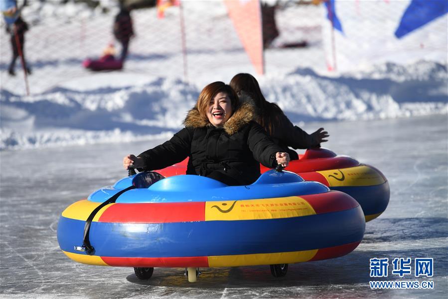 1月18日,游客在新疆天池景區(qū)玩電動(dòng)碰碰車(chē)。新華社記者 沙達(dá)提 攝