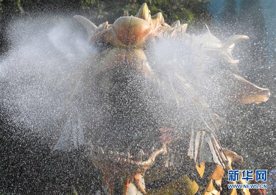 1月18日,大型機械裝置藝術(shù)品“龍馬精神”在珠海長隆海洋王國巡游展示。新華社記者 劉大偉 攝