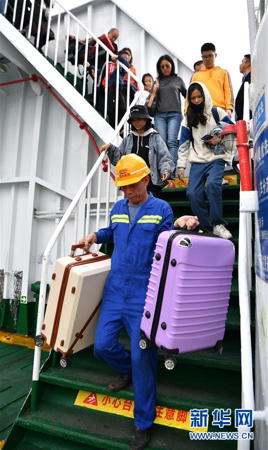1月19日,乘客在??谛阌⒏圯喍纱a頭登船。 新華社記者 郭程 攝