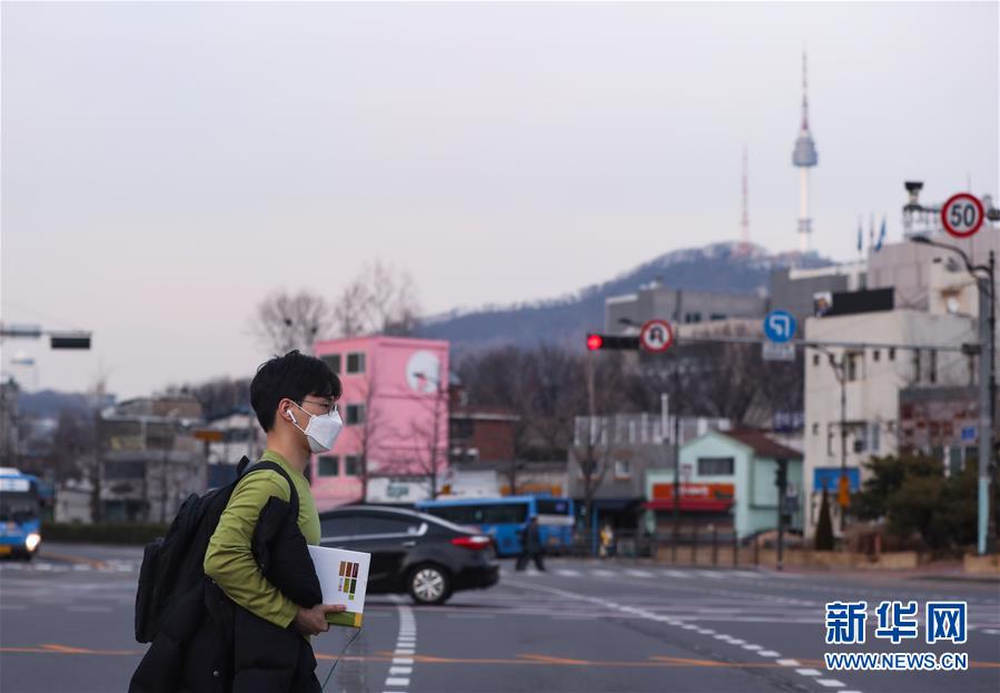 2月24日,在韓國首爾,一名男子行走在龍山區(qū)的道路上。 新華社記者 王婧嬙 攝