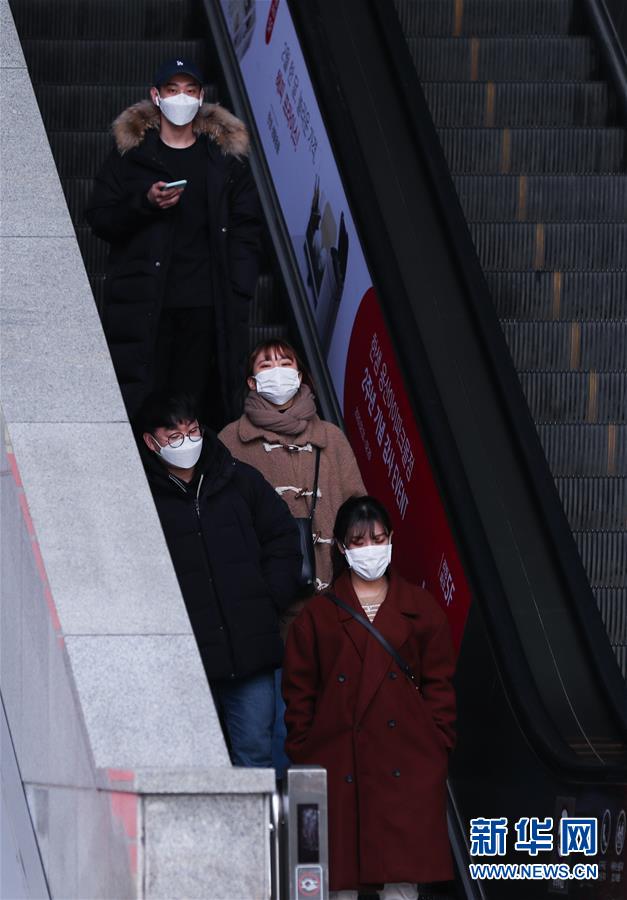 2月24日,在韓國首爾,當?shù)鼐用癯俗詣臃鎏荨? 新華社記者 王婧嬙 攝