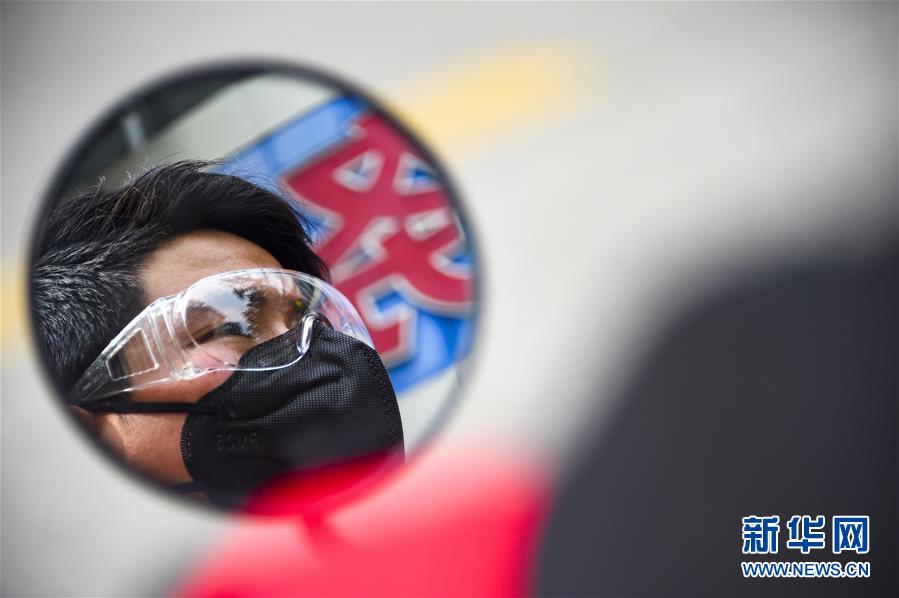 書院社區(qū)志愿者梁尚在騎車為居民送藥途中(2月23日攝)。 新華社記者 胡虎虎 攝