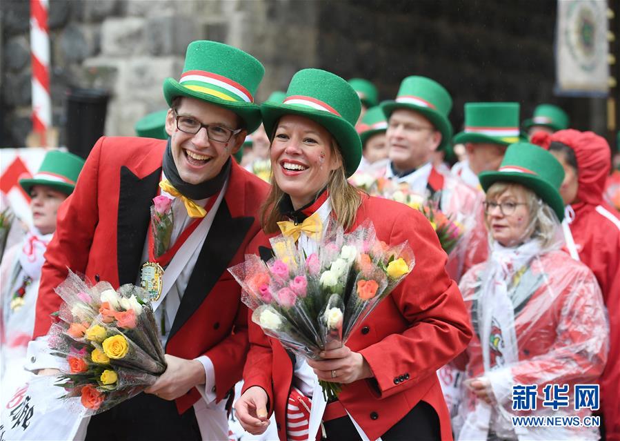 2月24日,在德國科隆,人們參加“玫瑰星期一”大游行。新華社記者 逯陽 攝