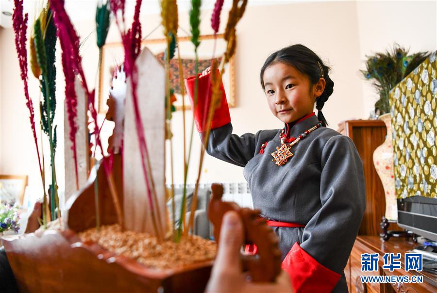 一名身著藏裝的藏族小姑娘在吃切瑪(2月24日攝)。當(dāng)日是藏歷新年初一,西藏各地群眾歡度藏歷新年。受新冠肺炎疫情影響,當(dāng)?shù)靥岢娫挵菽辍⑸俪鲩T、不聚集,居家享受新年樂(lè)趣。新華社記者晉美多吉攝