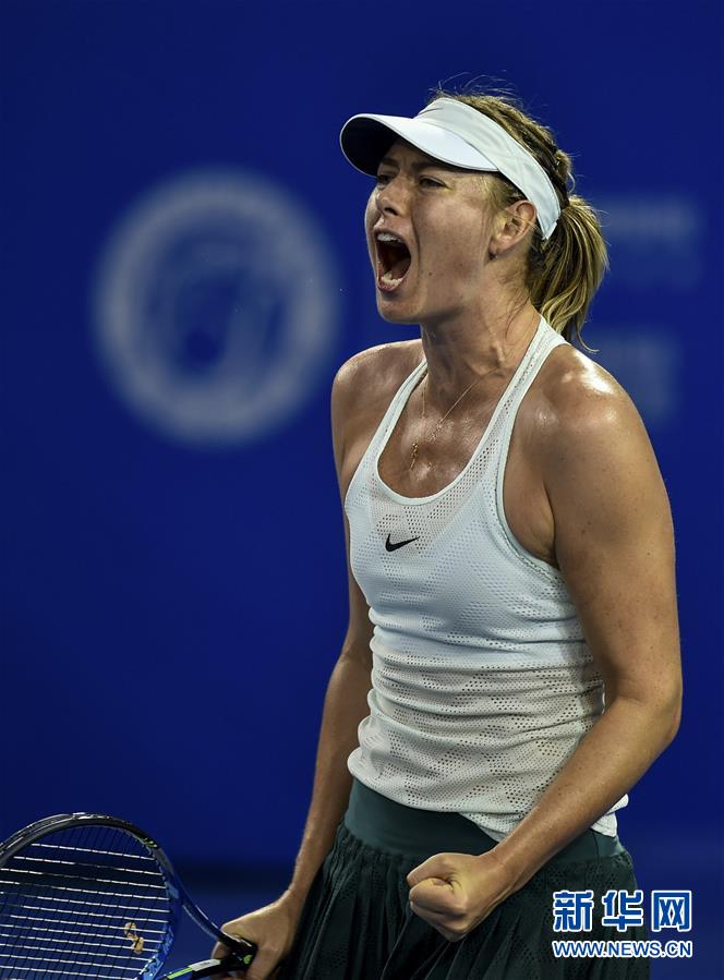 圖為2017年10月15日,莎拉波娃在2017年WTA天津網(wǎng)球公開賽單打決賽中戰(zhàn)勝白俄羅斯選手薩巴倫卡,獲得冠軍。 新華社記者岳月偉攝