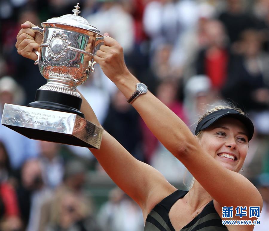 圖為2014年6月7日,莎拉波娃在法國(guó)網(wǎng)球公開賽女單決賽中戰(zhàn)勝羅馬尼亞選手哈勒普,奪得冠軍。 新華社記者陳曉偉攝