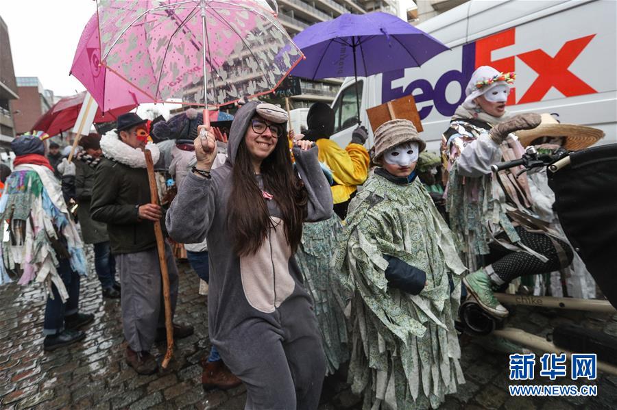 2月27日,人們在比利時布魯塞爾參加狂歡節(jié)活動。 新華社記者鄭煥松攝