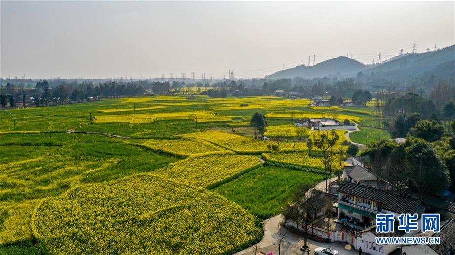 2月25日在四川省崇州市農(nóng)業(yè)產(chǎn)業(yè)功能區(qū)拍攝的油菜花田(無人機(jī)照片)。初春時(shí)節(jié),正值農(nóng)時(shí)。成都平原西部的大邑、崇州等縣市油菜長(zhǎng)勢(shì)良好,一片生機(jī)盎然的景象。新華社記者王曦?cái)z