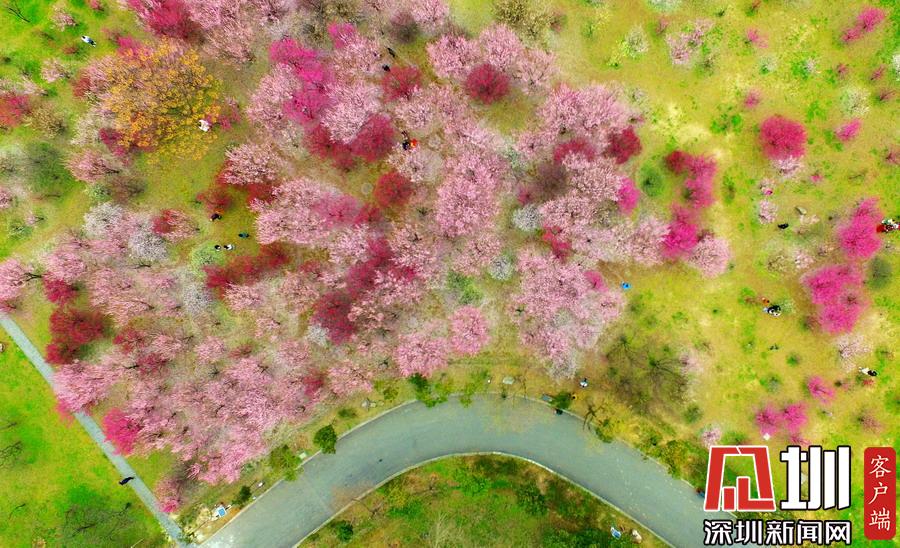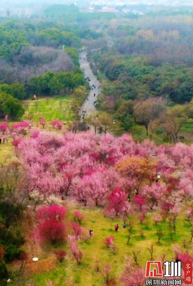江蘇省揚(yáng)州市蜀岡西峰生態(tài)公園內(nèi)梅花競(jìng)相綻放,五顏六色的梅花樹為古城大地披上七彩春裝,美不勝收。