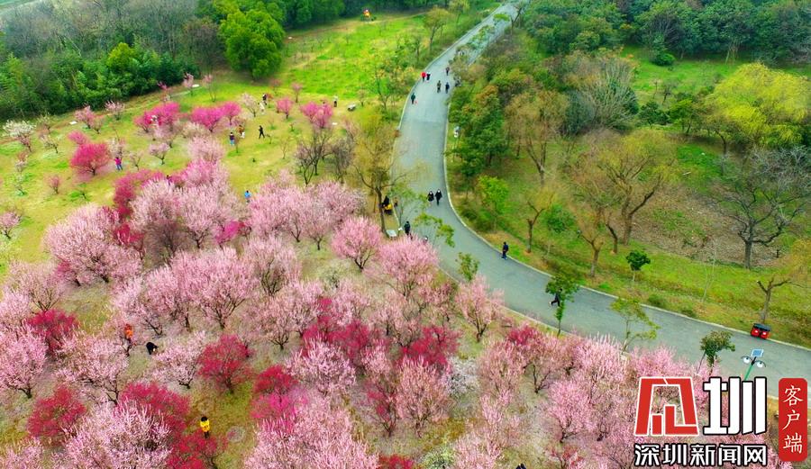 2020年2月26日,春暖花開,春意盎然,江蘇省揚(yáng)州市蜀岡西峰生態(tài)公園內(nèi)梅花競(jìng)相綻放,五顏六色的梅花樹為古城大地披上七彩春裝,美不勝收,吸引了市民和游客前來踏春賞景。