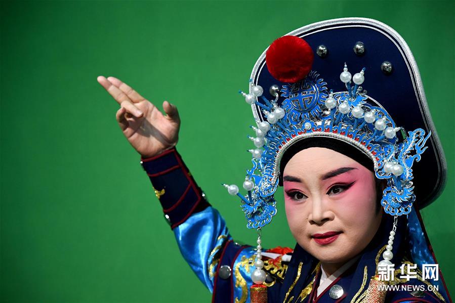 3月3日,李金玲在鄭州文化館通過直播的形式進行帶妝表演豫劇《花木蘭》選段。李金玲是鄭州工程技術學院音樂舞蹈學院的教授,也是豫劇常派弟子。14歲開始學習豫劇的她師從豫劇大師常香玉的次女陳小香。多年來,除了本職工作教學外,她還作為文化志愿者,到各地義務表演、授課,致力于豫劇的傳承與發(fā)展。疫情防控期間,鄭州文化館展開線上文藝戰(zhàn)“疫”,開通網絡直播平臺,李金玲也作為志愿者走進“直播間”,進行帶妝表演和教學,精彩的“云”上表演吸引了不少戲迷的關注?!霸谶@個特殊時期,通過直播的形式為大家表演,希望可以讓更多的人喜歡和了解豫劇,感受它獨特的魅力?!崩罱鹆嵴f。新華社記者 李安 攝