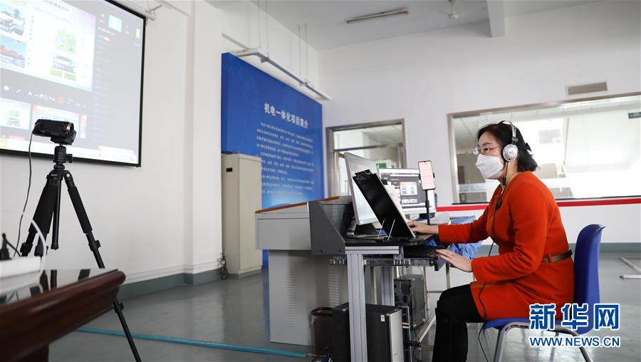 3月4日,職教城內(nèi)的鞍山市技師學(xué)院的王曉娜老師為學(xué)生進(jìn)行機(jī)電一體化網(wǎng)絡(luò)授課。遼寧省鞍山市職教城內(nèi)的各類職業(yè)教育學(xué)校從3月2日恢復(fù)網(wǎng)絡(luò)授課以來(lái),教師們?cè)O(shè)置了豐富多彩的課程,提高1萬(wàn)余名學(xué)生線上學(xué)習(xí)的積極性。新華社記者 姚劍鋒 攝