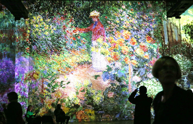 2月27日,在法國(guó)巴黎,人們?cè)凇稄哪?、雷諾阿到夏加爾:地中海之旅》光影藝術(shù)沉浸展的媒體預(yù)展上參觀?!稄哪?、雷諾阿到夏加爾:地中海之旅》光影藝術(shù)沉浸展將于2020年2月28日至2021年1月3日在法國(guó)巴黎舉行。展覽利用數(shù)碼投影技術(shù)為觀眾展示包括莫奈、雷諾阿、夏加爾等在內(nèi)的20位藝術(shù)大師關(guān)于地中海題材的代表作,讓觀眾沉浸在從印象派到現(xiàn)代主義畫作的視聽享受中。新華社記者高靜攝