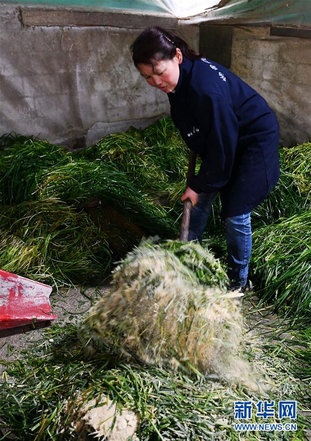 在貴州省銅仁市德江縣平原鎮(zhèn)坳田村,養(yǎng)殖戶在坳田畜牧養(yǎng)殖農(nóng)民專業(yè)合作社準備牛飼料(2月29日攝)。新華社記者 楊文斌 攝