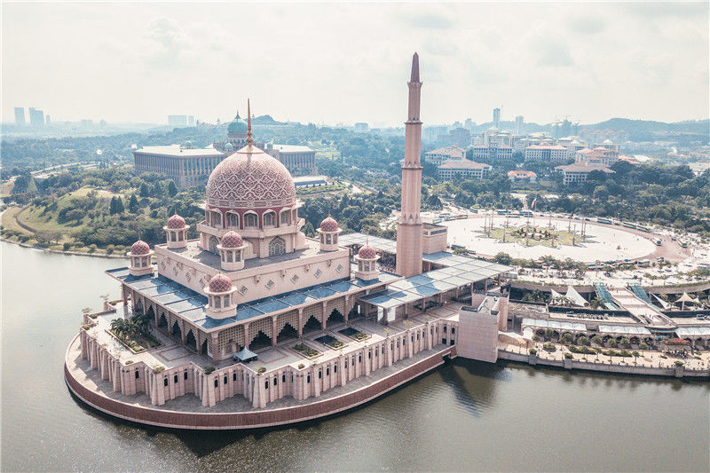 2018年05月30日,位于馬來(lái)西亞首都布城粉紅清真寺(Masjid Putra),圖為航拍俯視圖。丁俊豪/視覺中國(guó)
