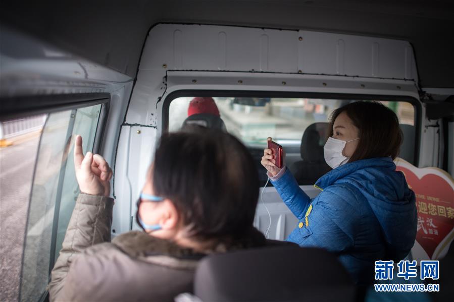 3月12日,黎婧(右)被小區(qū)工作人員接上車后,透過車窗拍攝熟悉的街道。 3月12日,插畫師黎婧和84位病友離開自己居住的武漢軟件工程職業(yè)學(xué)院康復(fù)驛站,回到自己家中。他們都是治愈出院的新冠病毒肺炎患者,已經(jīng)在武漢軟件工程職業(yè)學(xué)院康復(fù)驛站進行了14天醫(yī)學(xué)觀察,達到醫(yī)學(xué)標(biāo)準(zhǔn),成功解除隔離。他們由專車運送至所屬社區(qū)附近的集散點后,在社區(qū)工作人員的陪同下回家。 新華社記者 肖藝九 攝