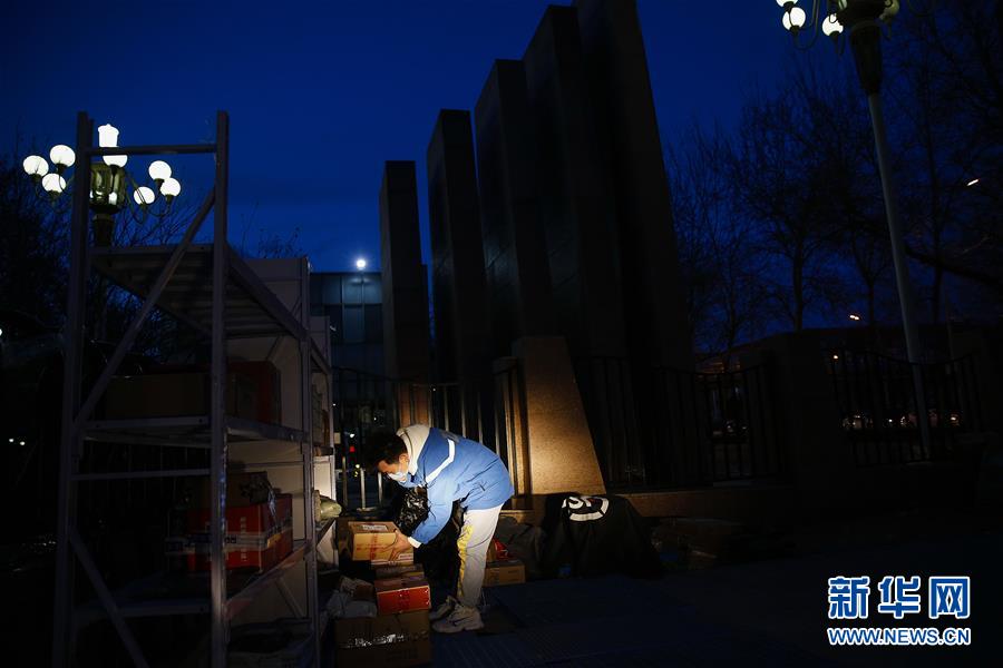 3月12日,李杰天黑之后返回途中來到一家便利店取件。新華社記者張玉薇攝