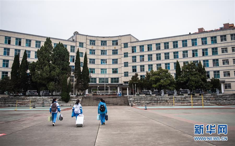 3月15日,烏當中學高三學生走向教學樓。 當日,貴陽市烏當中學部分高三學生有序返校,準備恢復上課。據悉,貴州省高三年級和初三年級學生將于3月16日正式開學。 新華社記者 陶亮 攝