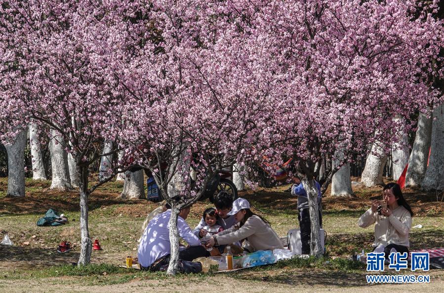 3月15日,在南京東郊體育公園,市民在櫻花樹下休息賞櫻。 當(dāng)日,南京風(fēng)和日麗,市民們來到東郊體育公園,踏青春游。 新華社記者 楊磊 攝