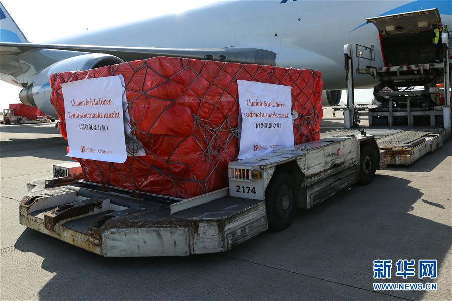 來自中國(guó)的30萬只口罩當(dāng)?shù)貢r(shí)間16日中午運(yùn)抵比利時(shí)列日機(jī)場(chǎng)。這是歐洲新冠肺炎疫情暴發(fā)以來,比利時(shí)首次得到大規(guī)模外來援助。這批物資由阿里巴巴公益基金會(huì)和馬云公益基金會(huì)提供。  新華社記者 張鋮 攝