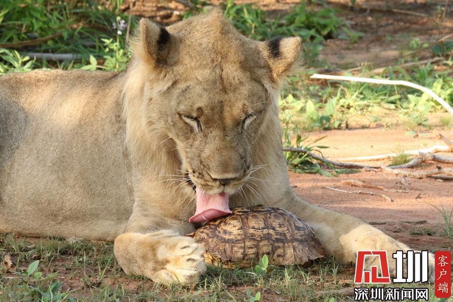 肯尼亞獅子捉了只烏龜當(dāng)“零食” 啃不到肉肉好生氣!