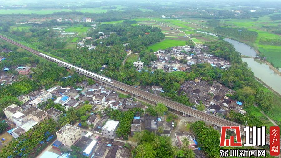 2020年3月17日,海南環(huán)島鐵路一列動車從春光明媚的瓊海城區(qū)經(jīng)過。