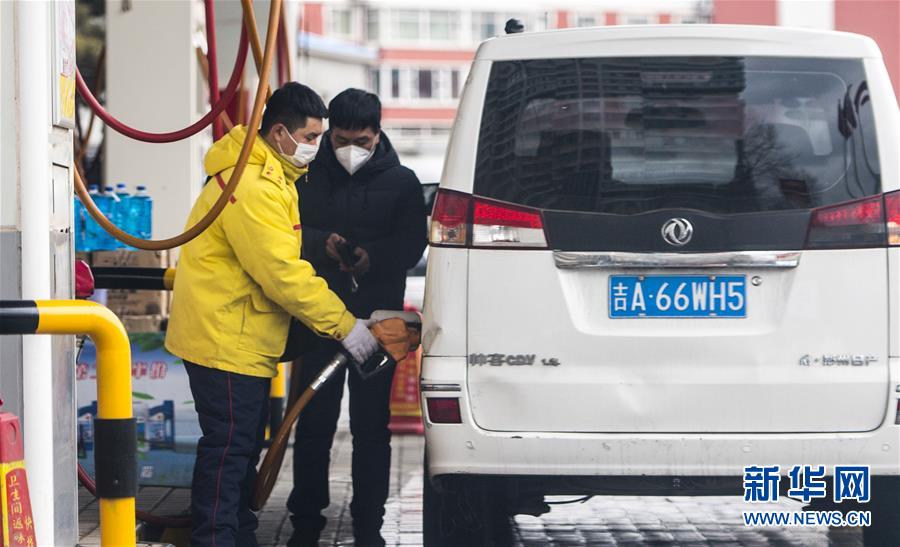 3月17日,吉林省長春市一處加油站工作人員為車輛加油。  國家發(fā)展改革委17日宣布,近日國際市場油價持續(xù)下跌,按照現(xiàn)行成品油價格形成機制,自2020年3月17日24時起,國內(nèi)汽油、柴油價格每噸分別降低1015元和975元。折合每升價格下調(diào)約8角。此次調(diào)價已至每桶40美元調(diào)控下限,即俗稱的“地板價”,低于40美元部分不再下調(diào)。新華社記者 許暢 攝