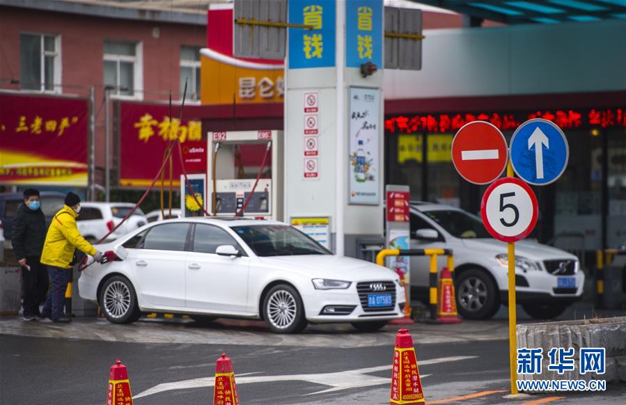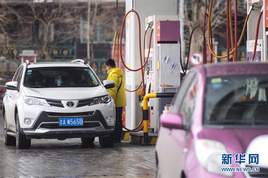 3月17日,吉林省長(zhǎng)春市一處加油站工作人員為車(chē)輛加油。 國(guó)家發(fā)展改革委17日宣布,近日國(guó)際市場(chǎng)油價(jià)持續(xù)下跌,按照現(xiàn)行成品油價(jià)格形成機(jī)制,自2020年3月17日24時(shí)起,國(guó)內(nèi)汽油、柴油價(jià)格每噸分別降低1015元和975元。折合每升價(jià)格下調(diào)約8角。此次調(diào)價(jià)已至每桶40美元調(diào)控下限,即俗稱的“地板價(jià)”,低于40美元部分不再下調(diào)。新華社記者 許暢 攝