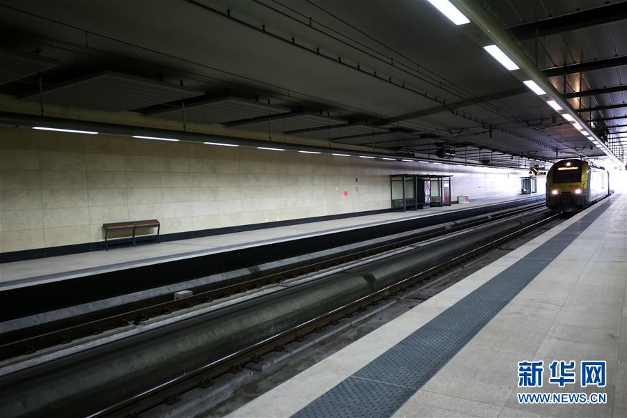 3月18日,在比利時(shí)布魯塞爾,舒曼火車站的月臺上空空蕩蕩。 新華社記者 張鋮 攝