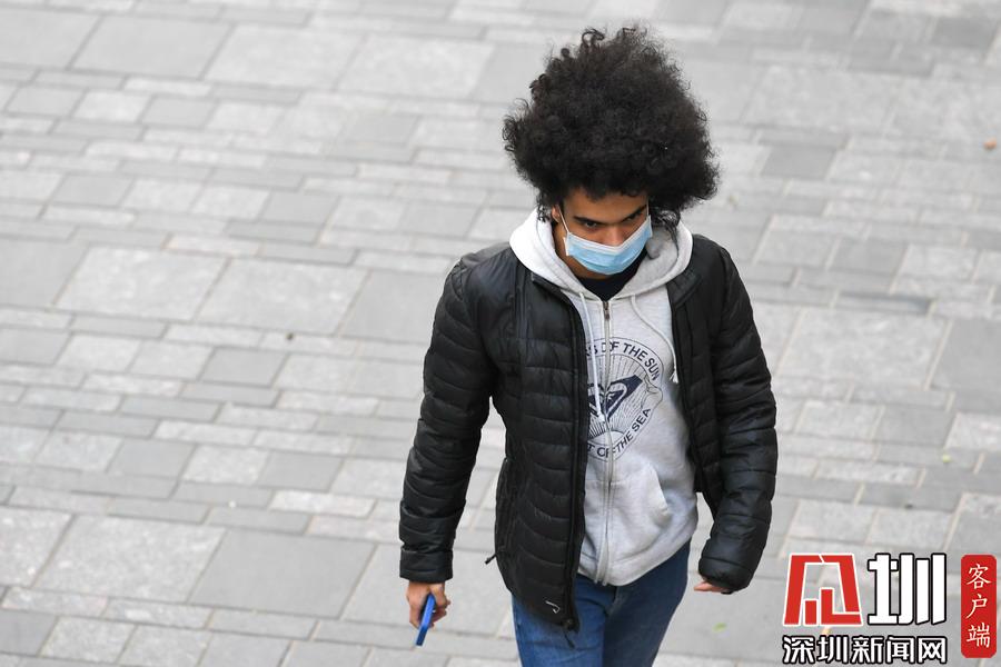 北京八九級(jí)大風(fēng)進(jìn)城,路人頭發(fā)被吹亂。
