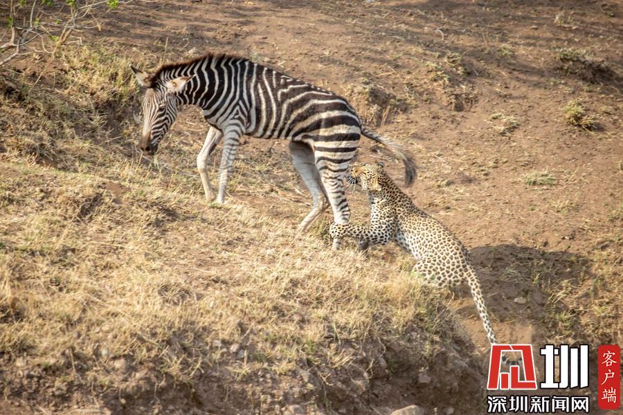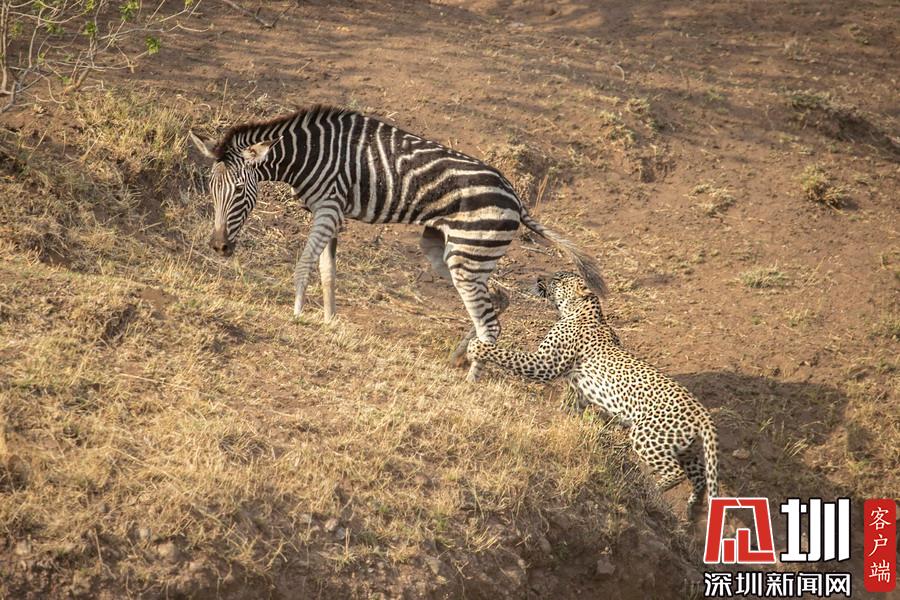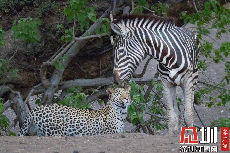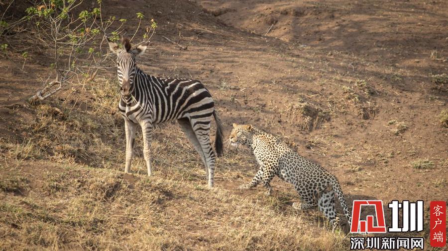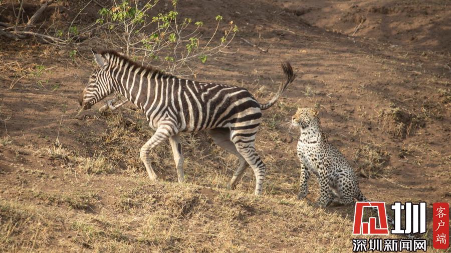 獵豹仿佛和斑馬成為了好友,緊緊跟隨這個新伙伴一起行走,最終斑馬將“屁股”對準了獵豹的頭部,而獵豹似乎在聞味道。