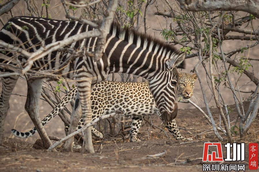 獵豹仿佛和斑馬成為了好友,緊緊跟隨這個新伙伴一起行走。