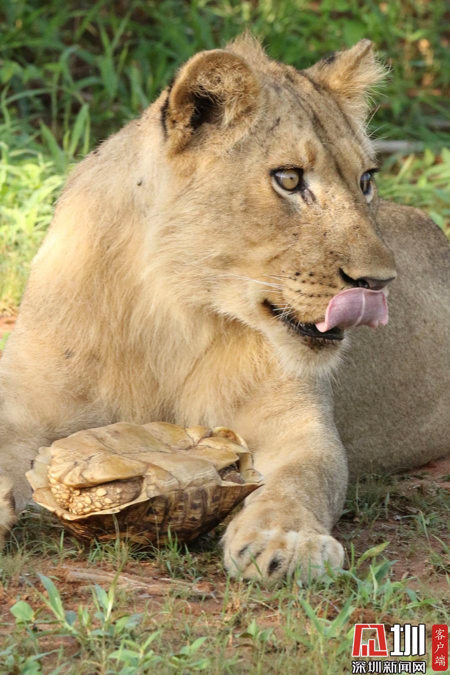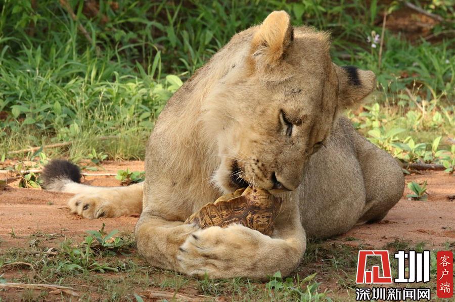 肯尼亞獅子捉了只烏龜當“零食”啃不到肉肉好生氣!