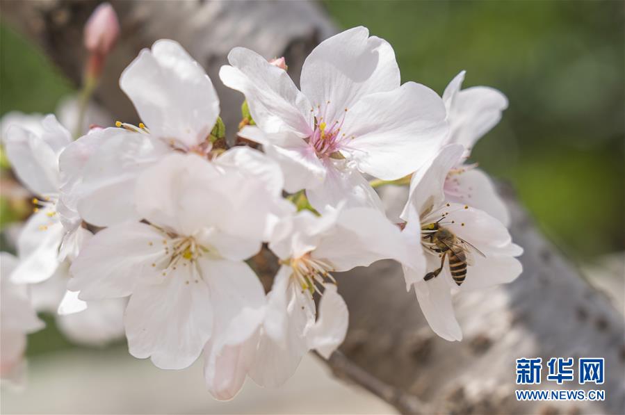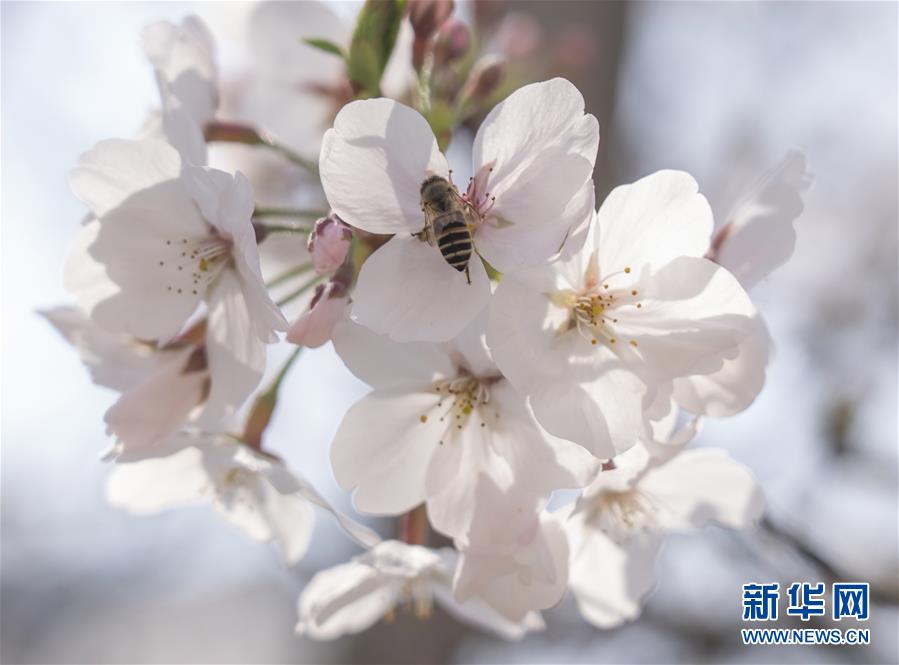 3月19日,在武漢市武昌區(qū)被網(wǎng)友稱為“武漢最美停車場(chǎng)”的湖北日?qǐng)?bào)停車場(chǎng),一名工作人員在拍攝櫻花。 新華社記者 才揚(yáng) 攝