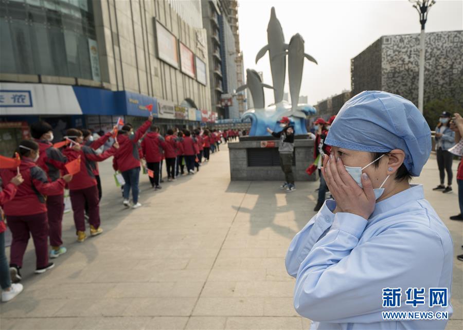 3月21日,武漢市第一醫(yī)院的護士長杜沛在送別天津市醫(yī)療隊隊員時掩面而泣。杜沛是負責與天津市醫(yī)療隊對接的護士長。