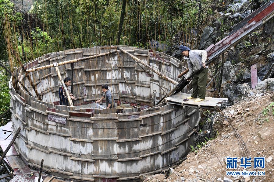 這是廣西大化瑤族自治縣七百弄鄉(xiāng)戈從村弄階屯群眾在修建水柜(2016年11月23日攝)。廣西有近一半貧困人口生活在石漠化地區(qū),涉及數(shù)十個縣區(qū)。這里也是廣西飲水保障程度最低的地區(qū),解決貧困人口飲水問題是廣西脫貧攻堅戰(zhàn)“硬仗中的硬仗”?!笆濉币詠恚瑥V西加快實施農(nóng)村飲水安全鞏固提升工程。因地制宜,采取新建、擴建及管網(wǎng)延伸等多種措施,補齊貧困地區(qū)水利薄弱短板,進一步提升石漠化地區(qū)群眾飲水安全保障水平,助推脫貧攻堅。新華社記者張愛林攝