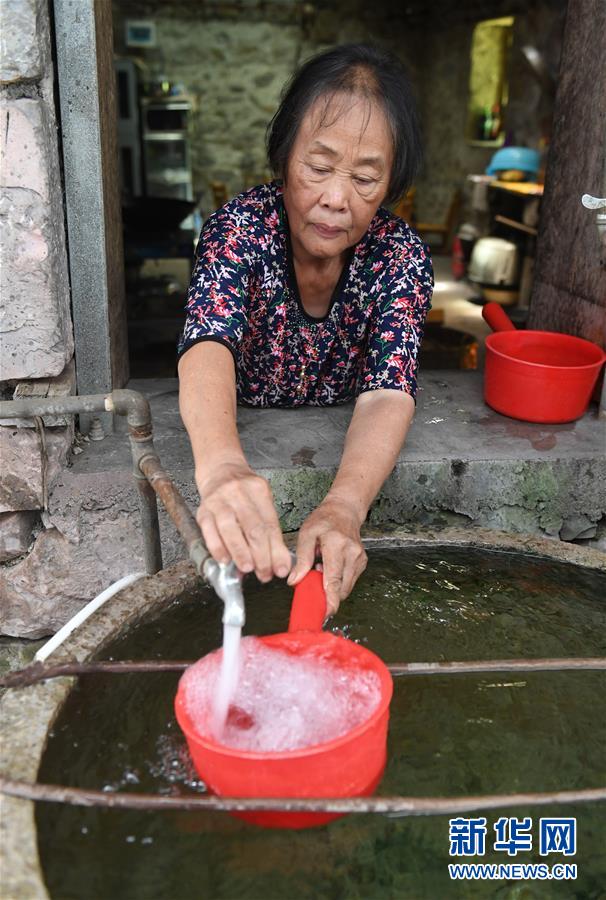 在廣西都安瑤族自治縣龍灣鄉(xiāng)琴棋村琴嶺屯,村民在接從水柜里引來的自來水(2019年7月23日攝)。廣西有近一半貧困人口生活在石漠化地區(qū),涉及數(shù)十個縣區(qū)。這里也是廣西飲水保障程度最低的地區(qū),解決貧困人口飲水問題是廣西脫貧攻堅戰(zhàn)“硬仗中的硬仗”?!笆濉币詠?,廣西加快實施農(nóng)村飲水安全鞏固提升工程。因地制宜,采取新建、擴建及管網(wǎng)延伸等多種措施,補齊貧困地區(qū)水利薄弱短板,進一步提升石漠化地區(qū)群眾飲水安全保障水平,助推脫貧攻堅。新華社記者陸波岸攝