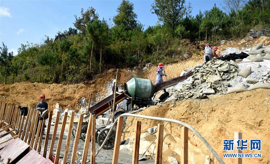 在廣西都安瑤族自治縣龍灣鄉(xiāng)龍煥村大朋屯,當?shù)厝罕娫谛藿ㄋ瘢?019年7月23日攝)。廣西有近一半貧困人口生活在石漠化地區(qū),涉及數(shù)十個縣區(qū)。這里也是廣西飲水保障程度最低的地區(qū),解決貧困人口飲水問題是廣西脫貧攻堅戰(zhàn)“硬仗中的硬仗”?!笆濉币詠?,廣西加快實施農(nóng)村飲水安全鞏固提升工程。因地制宜,采取新建、擴建及管網(wǎng)延伸等多種措施,補齊貧困地區(qū)水利薄弱短板,進一步提升石漠化地區(qū)群眾飲水安全保障水平,助推脫貧攻堅。新華社記者陸波岸攝