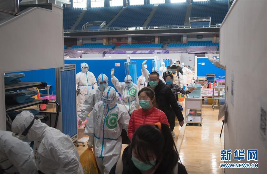 3月10日,武漢武昌方艙醫(yī)院正式休艙。這是醫(yī)護(hù)人員護(hù)送痊愈患者出艙。新華社記者肖藝九攝