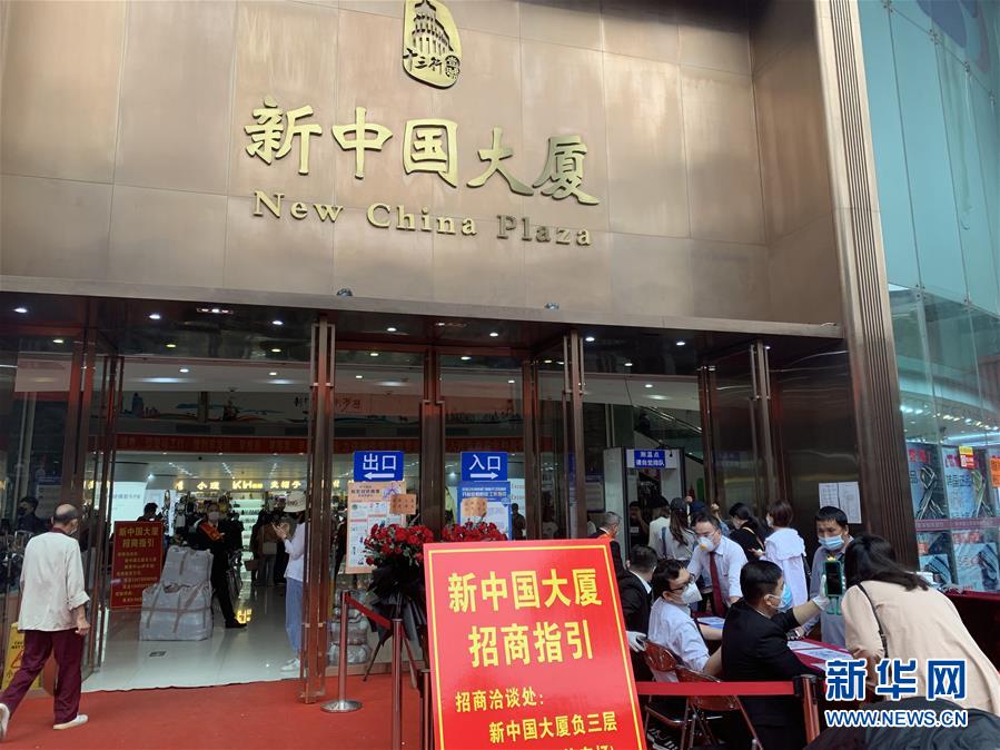 在廣州市新中國大廈門口,顧客排隊進(jìn)行安全檢查(3月21日攝)。新華社記者周穎攝