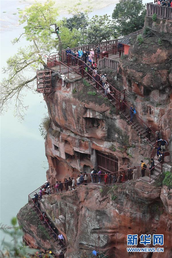 3月23日,游客在樂山大佛景區(qū)內(nèi)游覽。新華社記者張超群攝