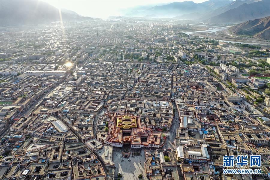 鳥瞰拉薩古城(8月10日無人機(jī)拍攝)。新華社記者普布扎西攝