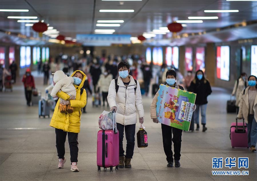3月28日,乘坐從利川始發(fā)的D5998次列車的旅客到達(dá)漢口站后出站。當(dāng)日零時起,武漢市恢復(fù)辦理鐵路客站到達(dá)業(yè)務(wù)。為做好抵漢旅客組織工作,武漢三大火車站安排專人提前與列車對接,核對下車人數(shù),并組織工作人員和鐵路志愿者提前在站臺等候接車,做好組織引導(dǎo)。列車到達(dá)后,車站配合防疫部門做好旅客出站測溫、登記信息等工作,并和公交集團(tuán)、地鐵公司聯(lián)動,引導(dǎo)旅客按照去向有序換乘。新華社記者肖藝九攝