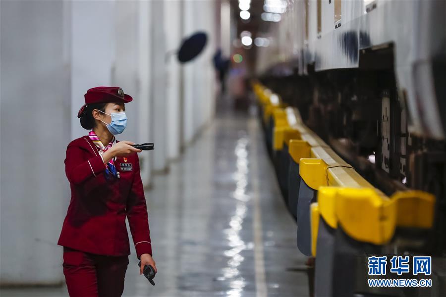 3月28日,武漢地鐵運(yùn)營(yíng)有限公司司機(jī)吳亞在常青車輛段檢查車輛情況。新華社記者沈伯韓攝