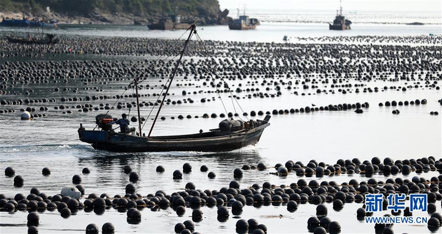 目前正是遼寧省大連市長??h扇貝和魚類收獲的季節(jié),長海縣小長山島海域經(jīng)典國家級海洋牧場呈現(xiàn)出一片繁忙的豐收景象。