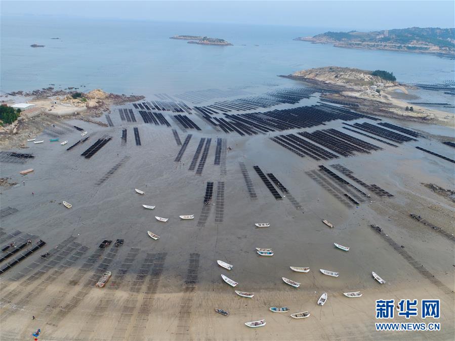 福建莆田蔣山村的千畝紫菜種植基地(10月24日無(wú)人機(jī)拍攝)。 新華社記者姜克紅攝