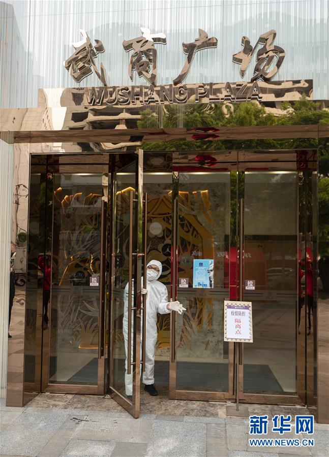3月30日,在武商國際廣場,一位工作人員打開隔離點的大門。進入商場時體溫超標的顧客,將被留置在此,等候醫(yī)護人員。當(dāng)日,武漢市多家商場開門迎客。新華社記者費茂華攝