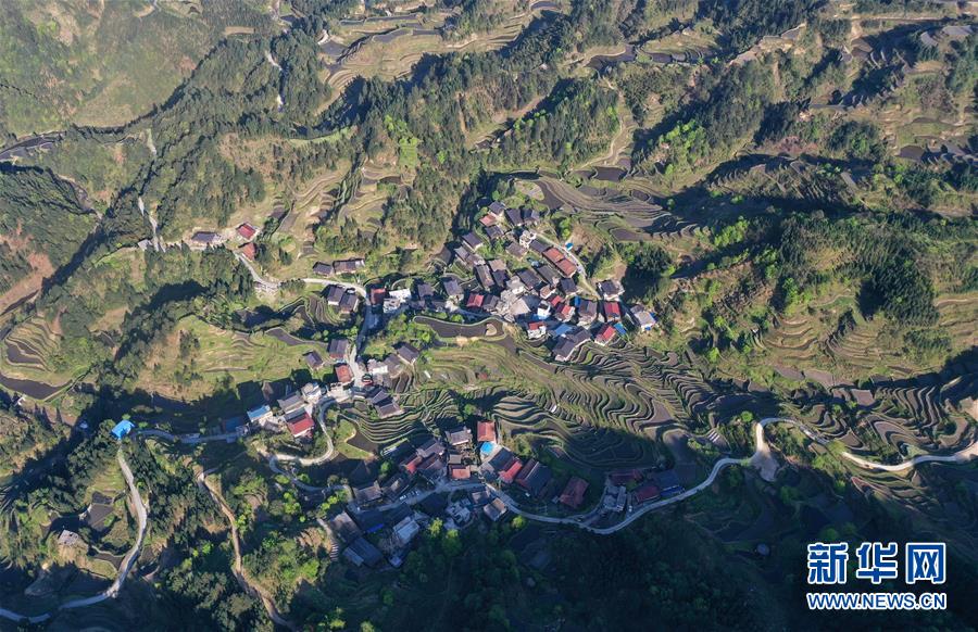 這是融水苗族自治縣桿洞鄉(xiāng)小河村高羽苗寨的木樓和梯田(3月31日攝,無人機(jī)照片)。隨著氣溫逐漸轉(zhuǎn)暖,廣西融水苗族自治縣桿洞鄉(xiāng)的苗寨梯田景色迷人,美如畫卷。新華社記者黃孝邦攝